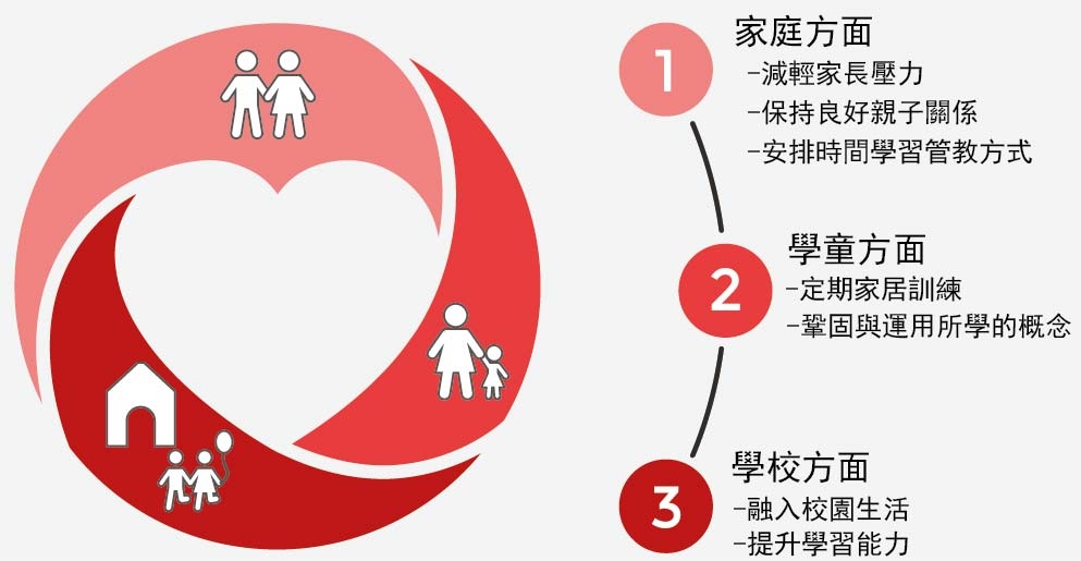 此外,治療師及導師亦會教導家長簡單的訓練技巧,導師亦會提供教學日誌,方便家長在家跟進,達致三方合作,讓孩子獲得更佳的治療效果。